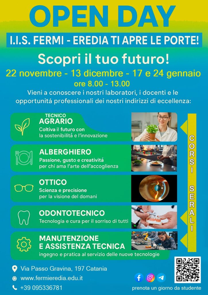 Vi aspettiamo dalle 8.00 alle 13.00 nella sede Fermi di via passo gravina 197 e nella sede Eredia di via del Bosco 43